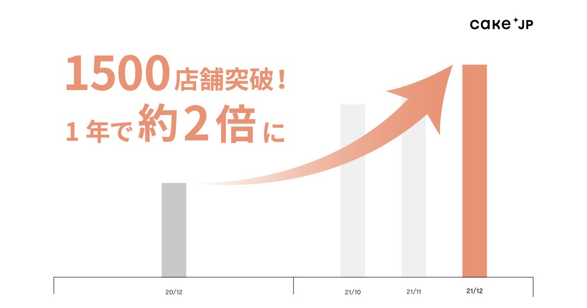ケーキ専門通販サイト「Cake.jp(ケーキジェーピー)」を運営する株式会社Cake.jp(本社:東京都新宿区、代表取締役:高橋 優貴)は、同サイトの加盟店舗数が1,500店舗を突破したことをご報告いたします。
