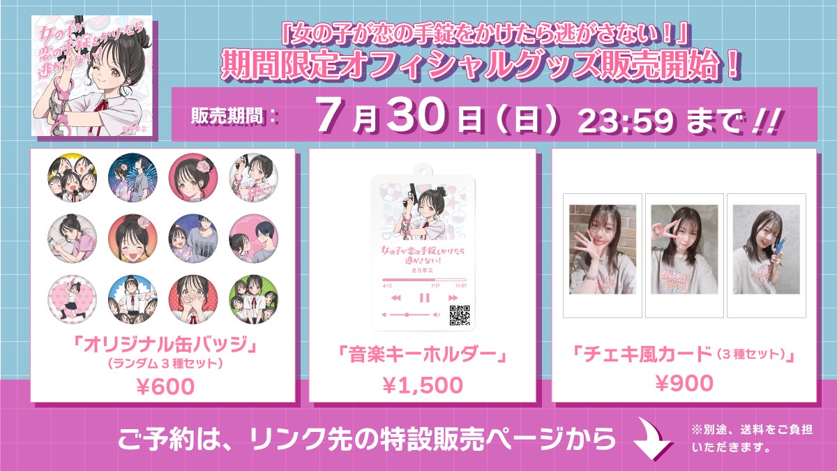 2ndシングルのリリースを記念して、星乃夢奈オフィシャルグッズを期間限定で販売いたします。今回販売するオフィシャルグッズは缶バッチ、アクリルキーホルダー、チェキ風カードの3種類です。星乃夢奈オフィシャルグッズは右記のサイト(https://hoshinoyuna.base.shop)で、7月30日(日)まで期間限定で販売します。