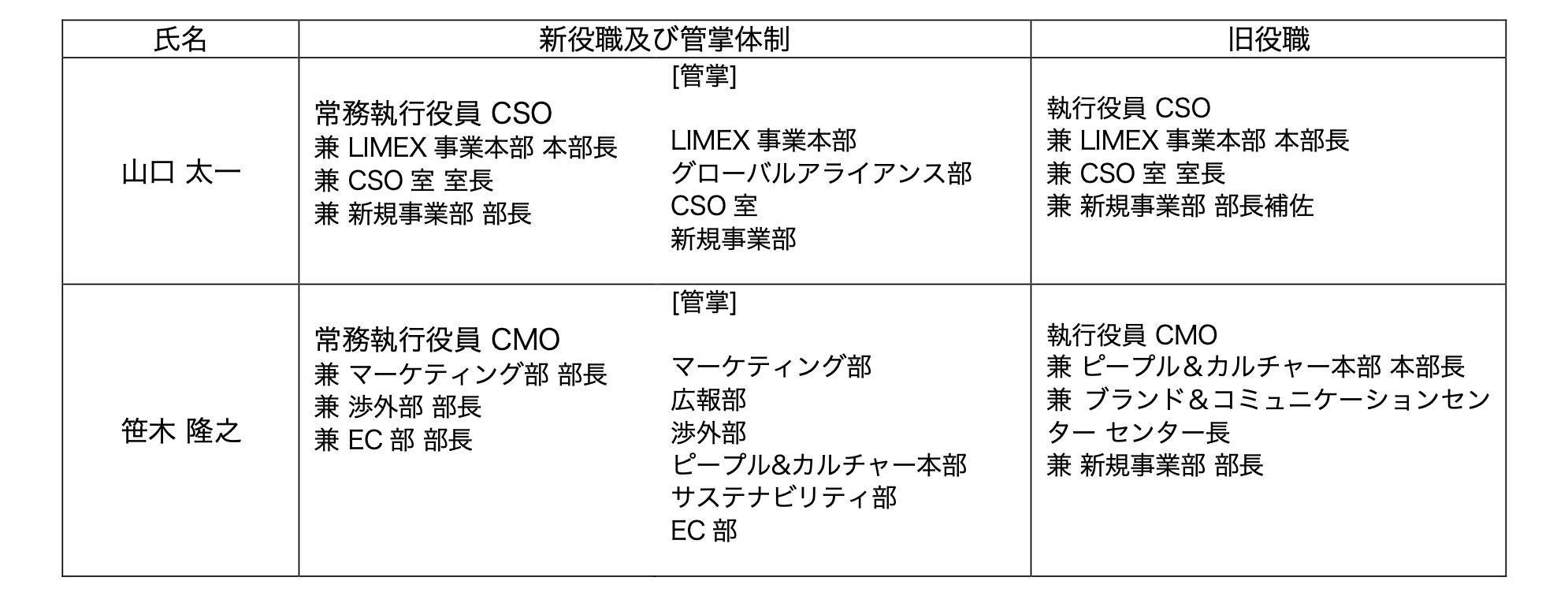 ■ 管掌体制への移行に伴う執行役員の人事(取締役兼務者を除き、異動者のみ)