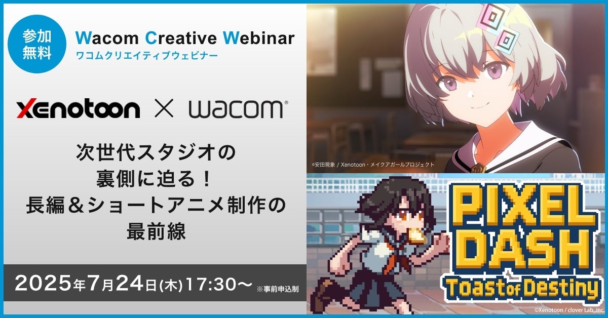 株式会社ワコムは、気鋭のアニメスタジオ・株式会社ゼノトゥーンとコラボした「Wacom Creative Webinar(ワコムクリエイティブウェビナー)」を、2025年7月24日(木)17:30より開催します(オンライン配信/参加無料・事前申込制)。