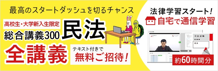 高校生・大学新入生必見!総合講義300(法律の基礎知識・民法)通信講義をテキスト付きで無料ご招待!