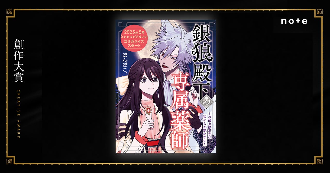 日本最大級の創作コンテスト「創作大賞2023」で文藝春秋コミック編集部賞を受賞した、ぽんぽこさんの漫画原作がコミカライズ。受賞作に改稿を重ね『銀狼殿下の専属薬師~冷酷な狼王子は私にしか懐かない~』として、コミックサイト「Seasons」にて5月16日(金)から連載されます。