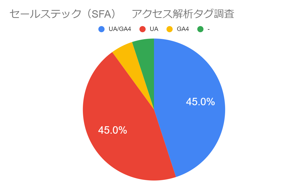 セールステック(SFA)業界サイトのGA4導入率は、半数と他業界より進んでいる