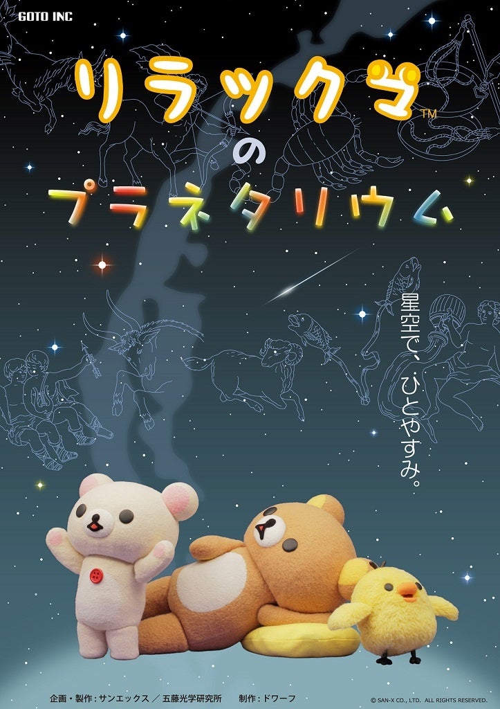 内容:「リラックマ」と「プラネタリウム」のコラボレーション。春夏秋冬、それぞれの星座たちが登場。プラネタリウムの魅力満載のプログラムです。