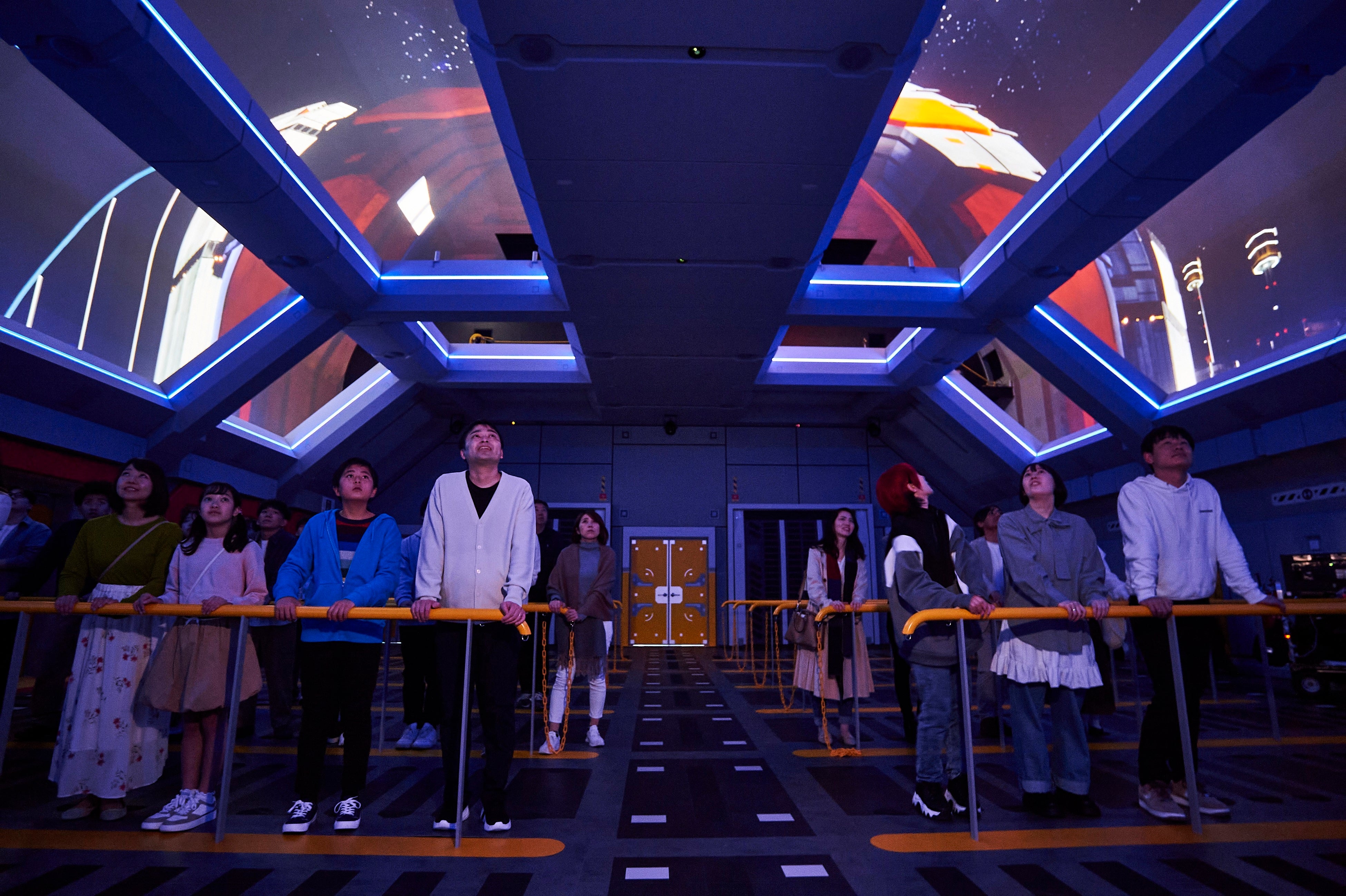 「GUNDAM NEXT FUTURE PAVILION」は、ガンダムシリーズが描いてきた「宇宙での暮らし」や「まだ実現していない科学技術」を、新たな未来の可能性として捉え、臨場感のある完全新規映像と、フェーズ0から7までのパビリオン空間を通して描き出しています。新たな「宇宙世紀」という設定の中で、来館者は大阪・夢洲から軌道エレベーターに乗り宇宙ステーション「スタージャブロー」まで移動し、見学ツアーに参加する体験ができます。「スタージャブロー」では人類とモビルスーツが共存する映像世界を体験しながら、背中部分に「グラスフェザー」という装備を装着したガンダムやさまざまなモビルスーツ、新デザインのハロとの出会いがあります。
