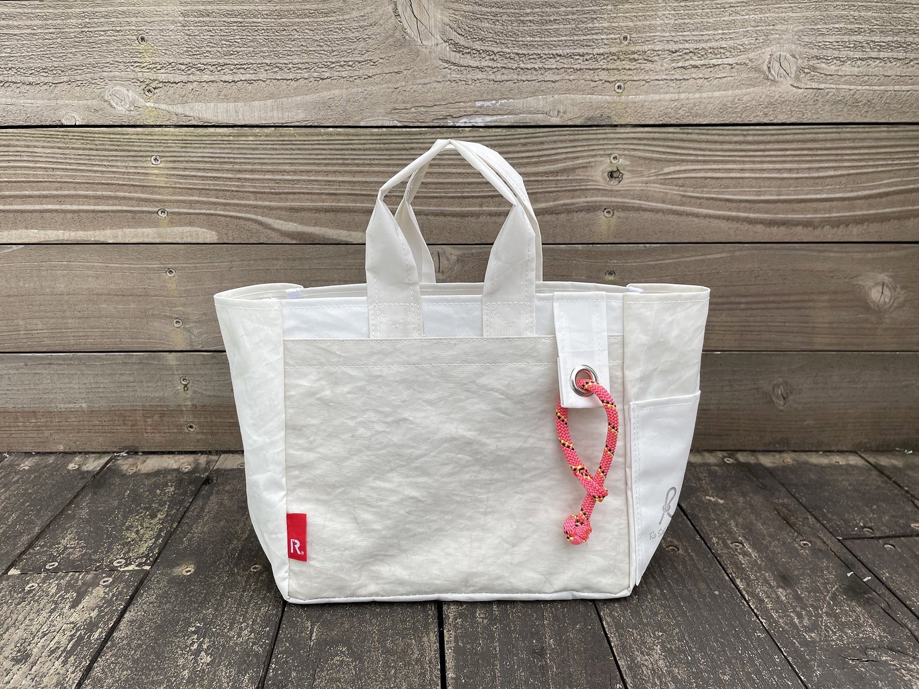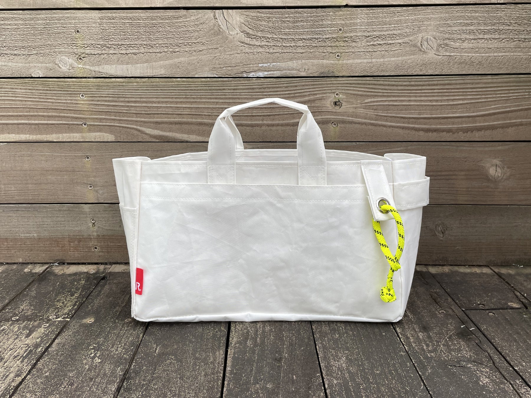RT.デリ.RESAIL 14,300円(0423 01 アソート)サイズ:W25×H22×D14cm 持ち手25cm ソフトシャックル20cm 素材:使用済みヨットセイル生地(ポリエステル) ポケット:外側2箇所(2022年9月発売)