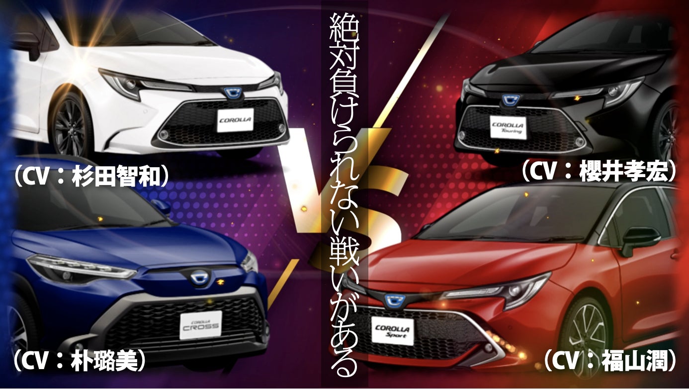 本作では、カローラを杉田智和さん、カローラ ツーリングを櫻井孝宏さん、カローラ スポーツを福山潤さん、カローラ クロスを朴璐美さんと、テニス選手として大会に臨む各種カローラたちに豪華声優陣がアテレコ。新メンバーカローラ クロスの活躍をはじめ、選手たちから次々と繰り出される個性的な必殺技で白熱していく試合の様子を描いています。
