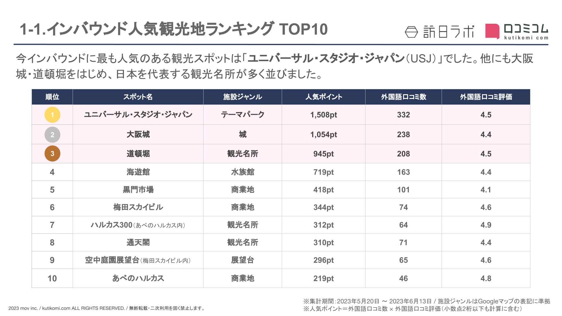 【独自調査】インバウンド人気観光地ランキング大阪編:コロナ後 最新の訪日客の支持を集めたスポットTOP10を発表 #インバウンドMEO
