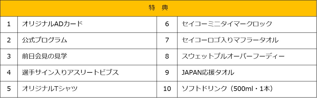 ・セイコープレミアムシートおよび車いす席、車いすB席アスリート撮影会付きは対象外です。