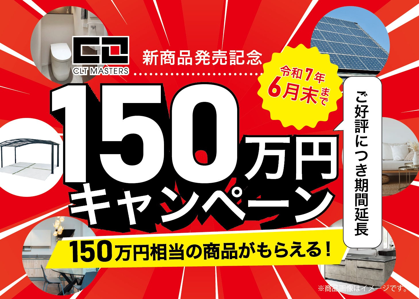 キャンペーン概要/■対象期間:令和7年6月30日までの期間中に新規予約受注、令和8年3月までに着工の住まいが対象です。■対象のお客様:CLT MASTERSでご契約のお客様(企画住宅、分譲住宅は対象外)■設備セレクションシートの併用、補填は対象外です。また、予算を別の項目に当てることは不可とします。■ポイント数は税別として換算いたします。■以下に続くマイナスポイントオプションは不可:気密工事/断熱等級6/ダクト式第一種換気取止(ただしダクトレス式第一種換気への変更は可)■ポイントの換金は不可です。ポイントに余りがある場合も減額対応はできかねます。
