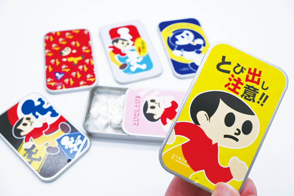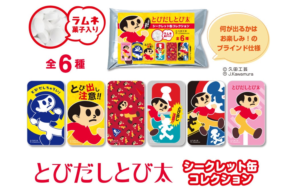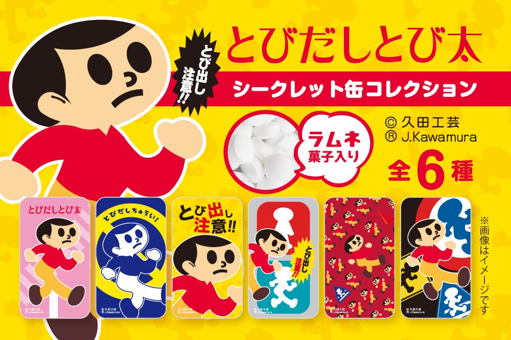 オリジナル商品の企画・制作・販売を軸に、企業・組織のトータルブランディングを手掛ける株式会社ヘソプロダクション(本社:大阪市福島区・代表取締役:稲本ミノル)は、元祖飛び出し注意看板「とびだしとび太」の製作で有名な看板制作会社「久田工芸(滋賀県東近江市)」の企画協力のもと、とびだしとび太の新商品として、「とびだしとび太 シークレット缶コレクション(全6種)」を新発売いたします。