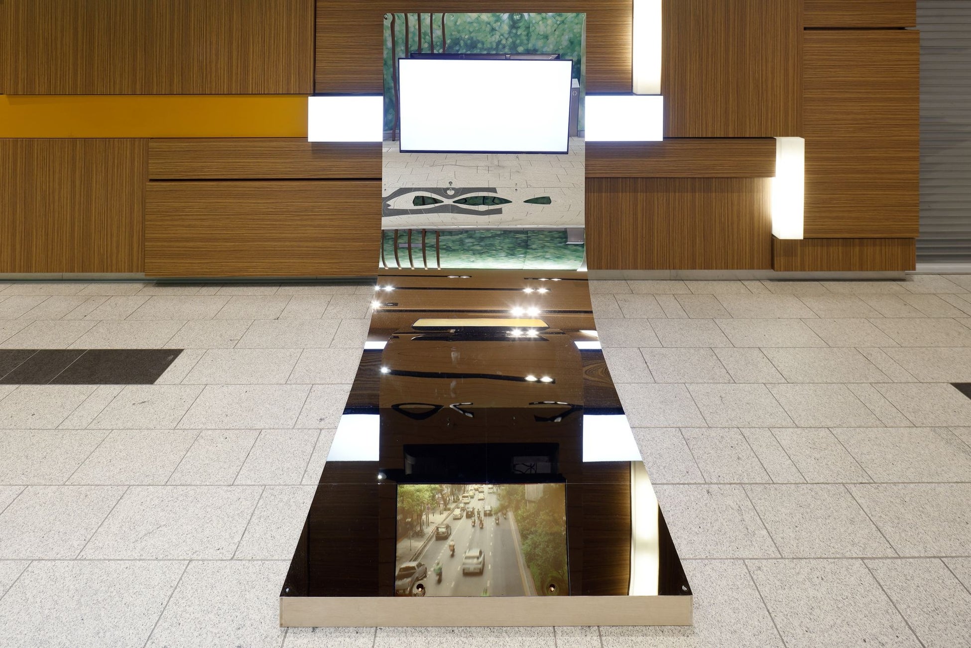 通信技術の進歩により、私たちの生活、社会関係は「いま·ここ」の外にも拡張され、リアリティを簡単にオンライン·オフラインで定義できなくなりました。この作品は、現代社会の静と動という象徴から造形要素を抽出し、虚構·平面空間で作られた立体物を現実空間で再構築する。鑑賞者に複数の時間軸の出来事を想像させ、虚構と現実に跨る「リアリティ」を捉えることが狙いです。