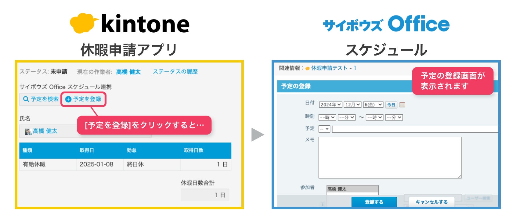 ・「kintone」で承認された休暇を「サイボウズ Office」のスケジュールに予定登録する
