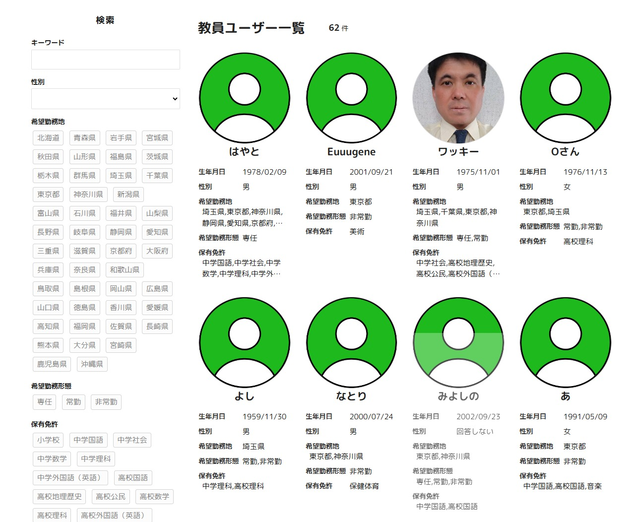 教員免許の種別や専任・非常勤などの希望勤務形態を登録・検索できるため、教員と学校のニーズに合った最適なマッチングが実現します。