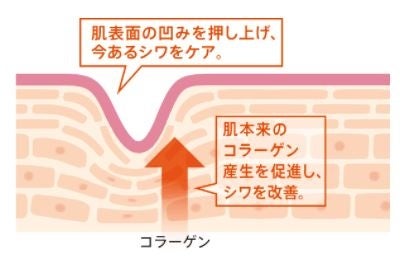 肌の弾力を支えるコラーゲンは、加齢や光老化により減少・変性します。ナイアシンアミドは、真皮コラーゲンの産生を促進することで、内側から凹みを押し上げ、刻まれているシワを改善します。