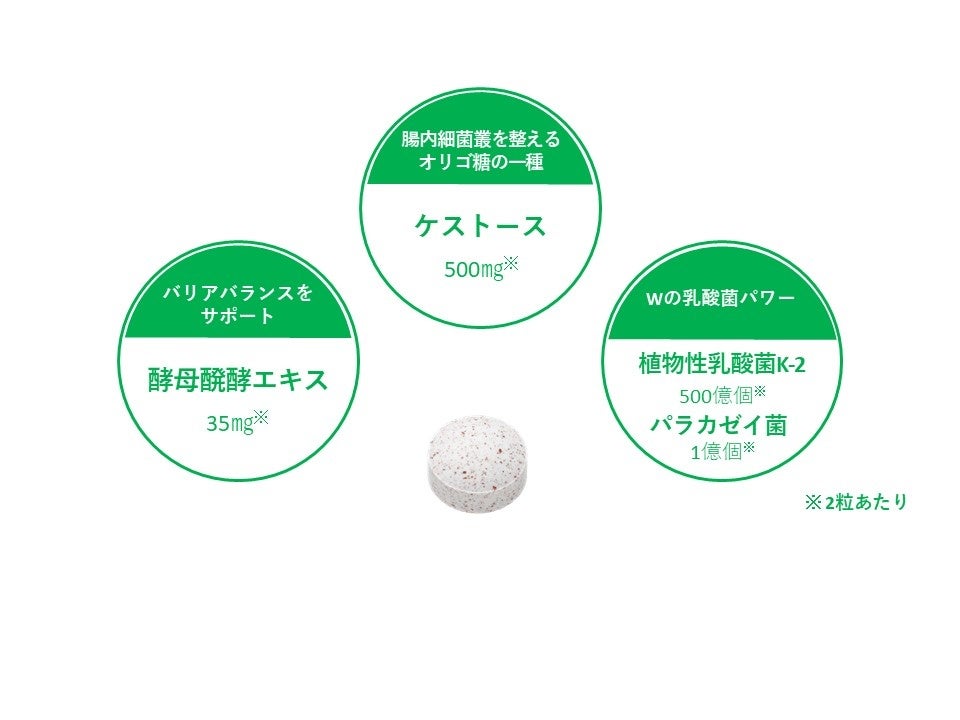 「DHC 犬用 かゆケアドッグ」は、腸内細菌叢を整えるオリゴ糖の一種であるケストース、バリアサポート成分の酵母醗酵エキス、植物性乳酸菌K-2・パラカゼイ菌のWの乳酸菌を配合し、ワンちゃんのムズかゆにアプローチするサプリメントです。
