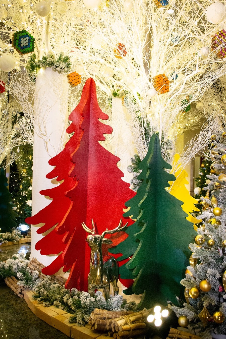 廃材をアップサイクルしたツリーやオーナメントが華を添える装飾が登場