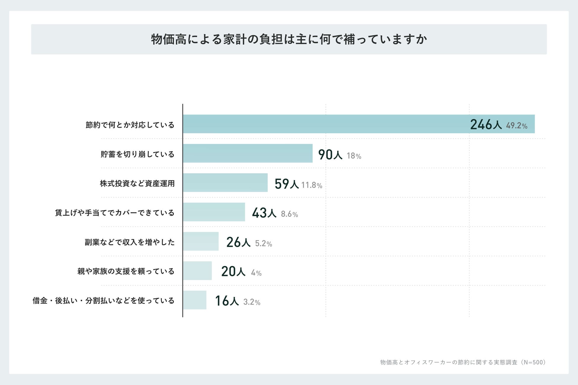 約5割が物価高の負担を「節約」でカバー、投資や副業は一部に留まる