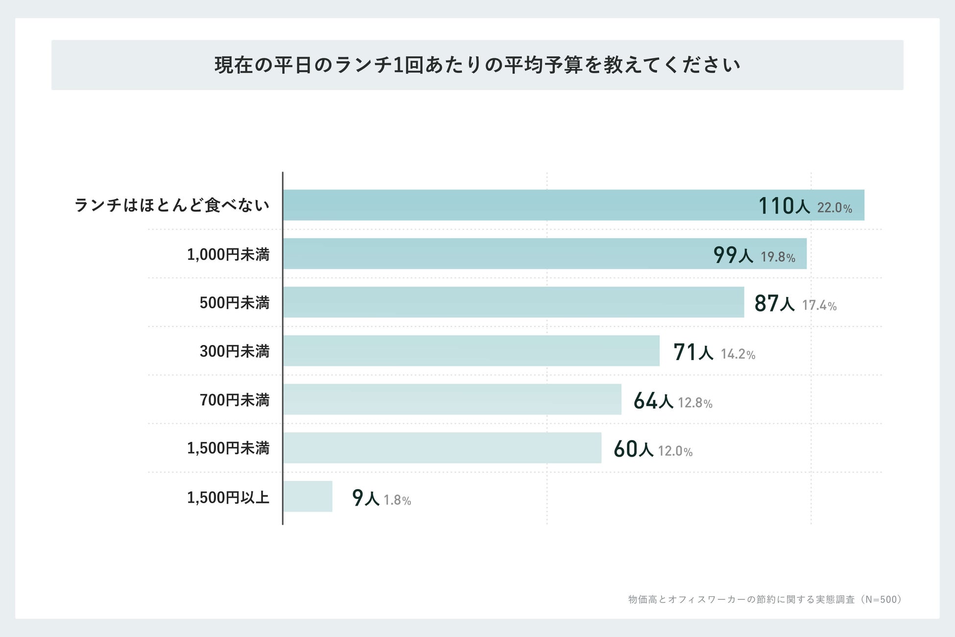 ランチ予算500円未満が全体の約32%、「ランチを食べない」が22%