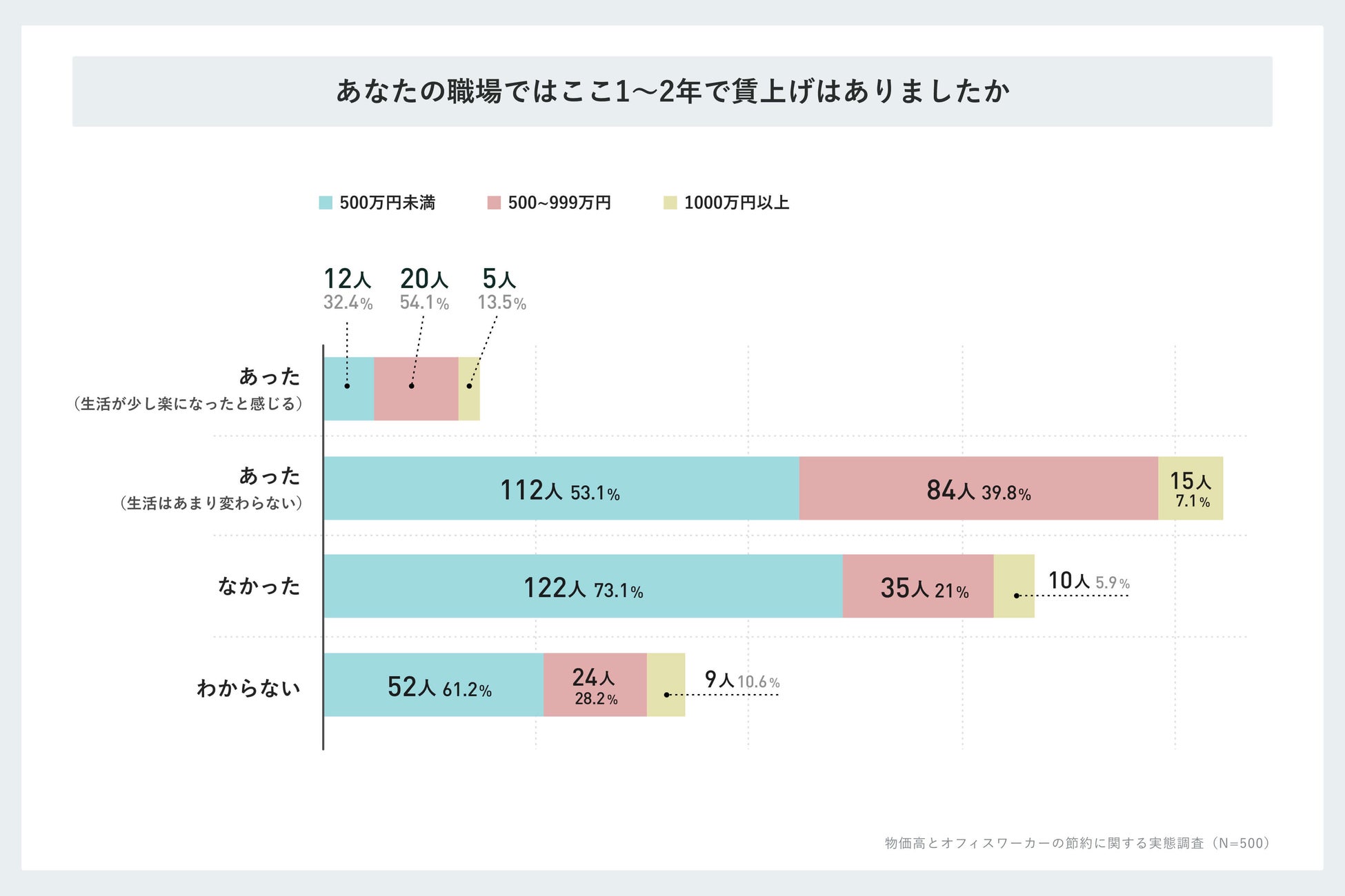 また、賃上げの有無を年収帯別に見ると、年収帯が低い層ほど賃上げがなく、また、賃上げがあっても生活が楽になっていないと回答する割合が多いことが判明しました。