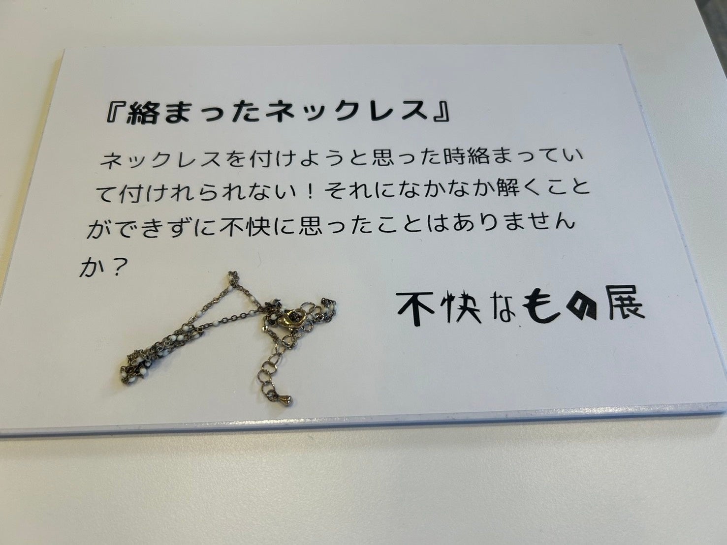 自分にぴったりあった下着の快適さを知るために、まずは不快な状態を知ってもらいたいという想いから展示会を企画。「洋服から透けてしまう下着」「絡まったネックレス」など実物やイラスト、音などで展示予定。