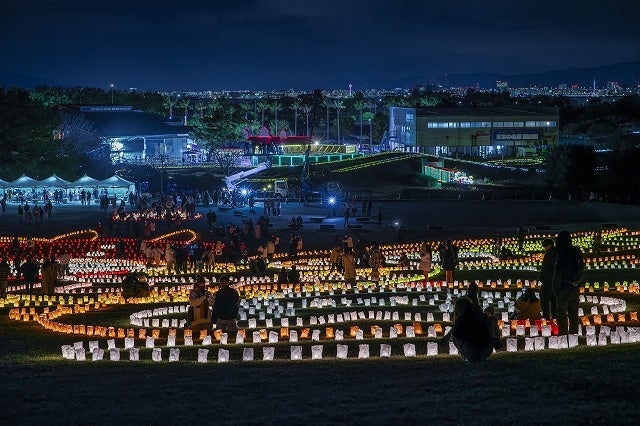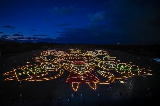 福岡県福岡市東区にある国営海の中道海浜公園では、12/14(土),15(日),21(土),22(日),25(水)の5日間、うみなか冬の風物詩「うみなかキャンドルナイト2024」を開催します。市民ボランティアに協力いただき、野外劇場に1万本のキャンドルを並べて創作するキャンドルアート。今年のテーマは「~みんなのハッピークリスマス~」。一般公募で募集したデザインの中から最優秀賞に輝いた作品を、1万本のキャンドルで縦横100mの巨大な地上絵を描きます。
