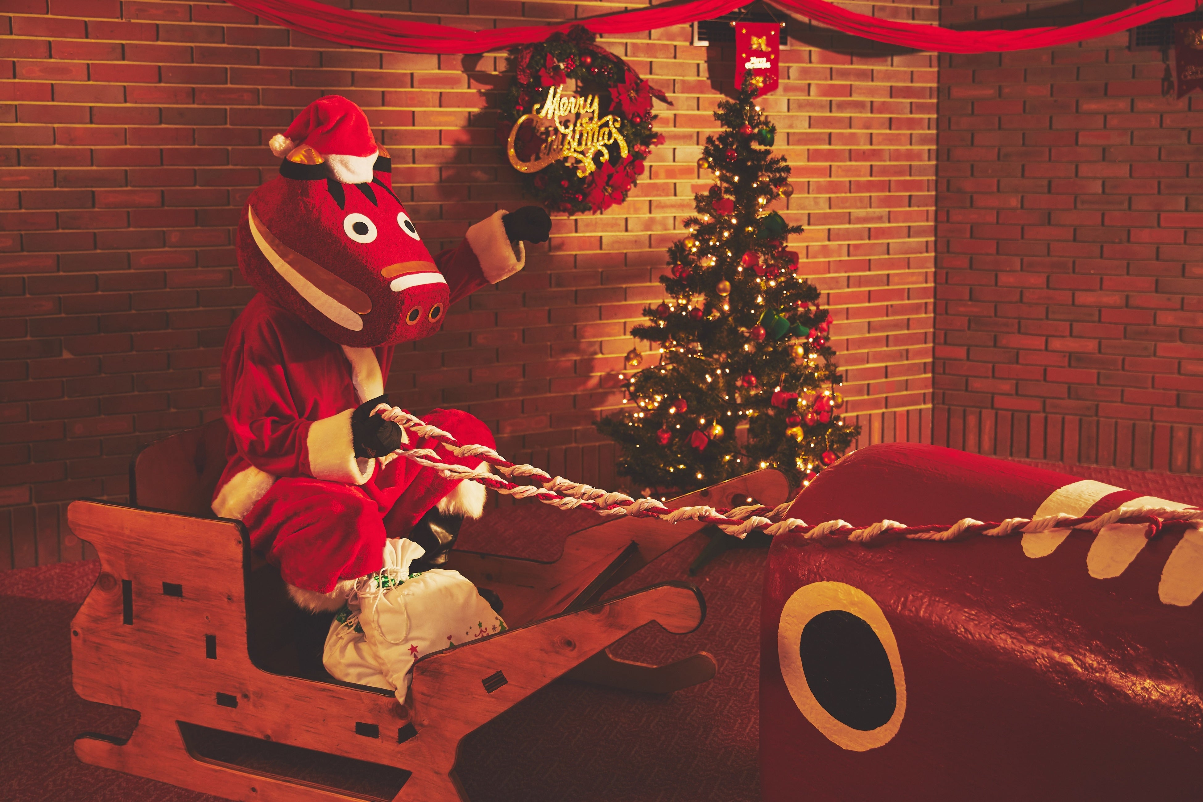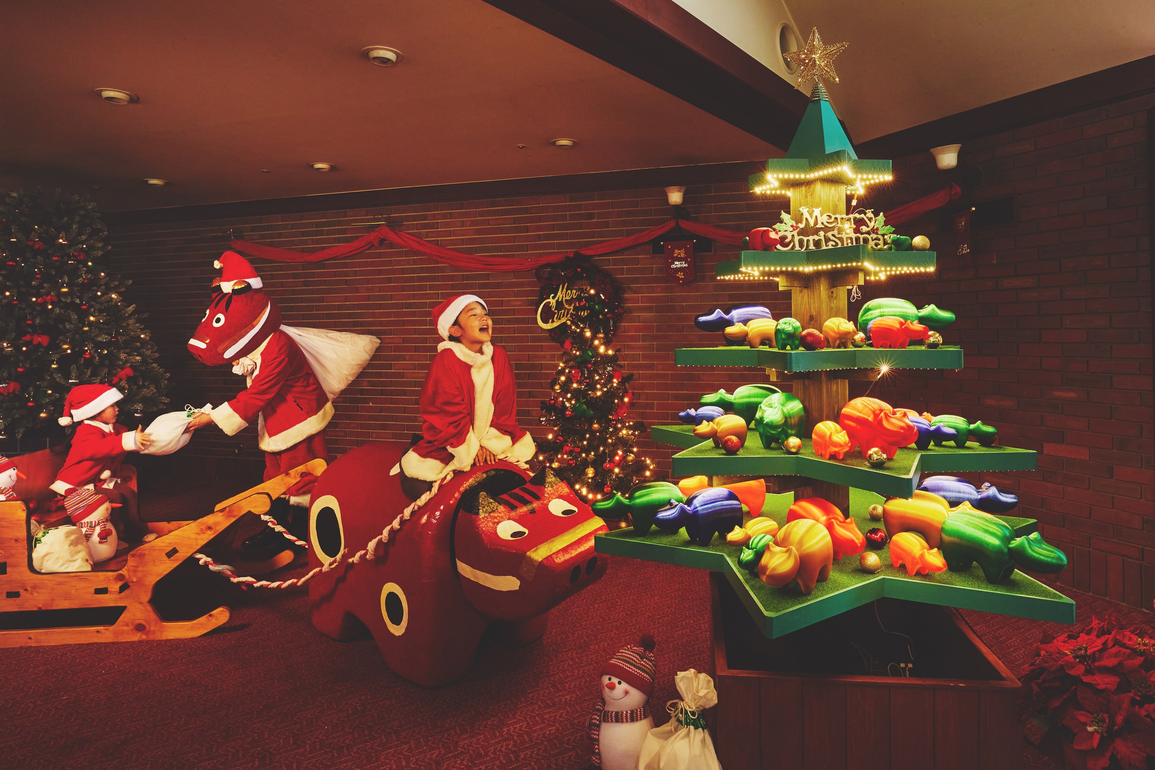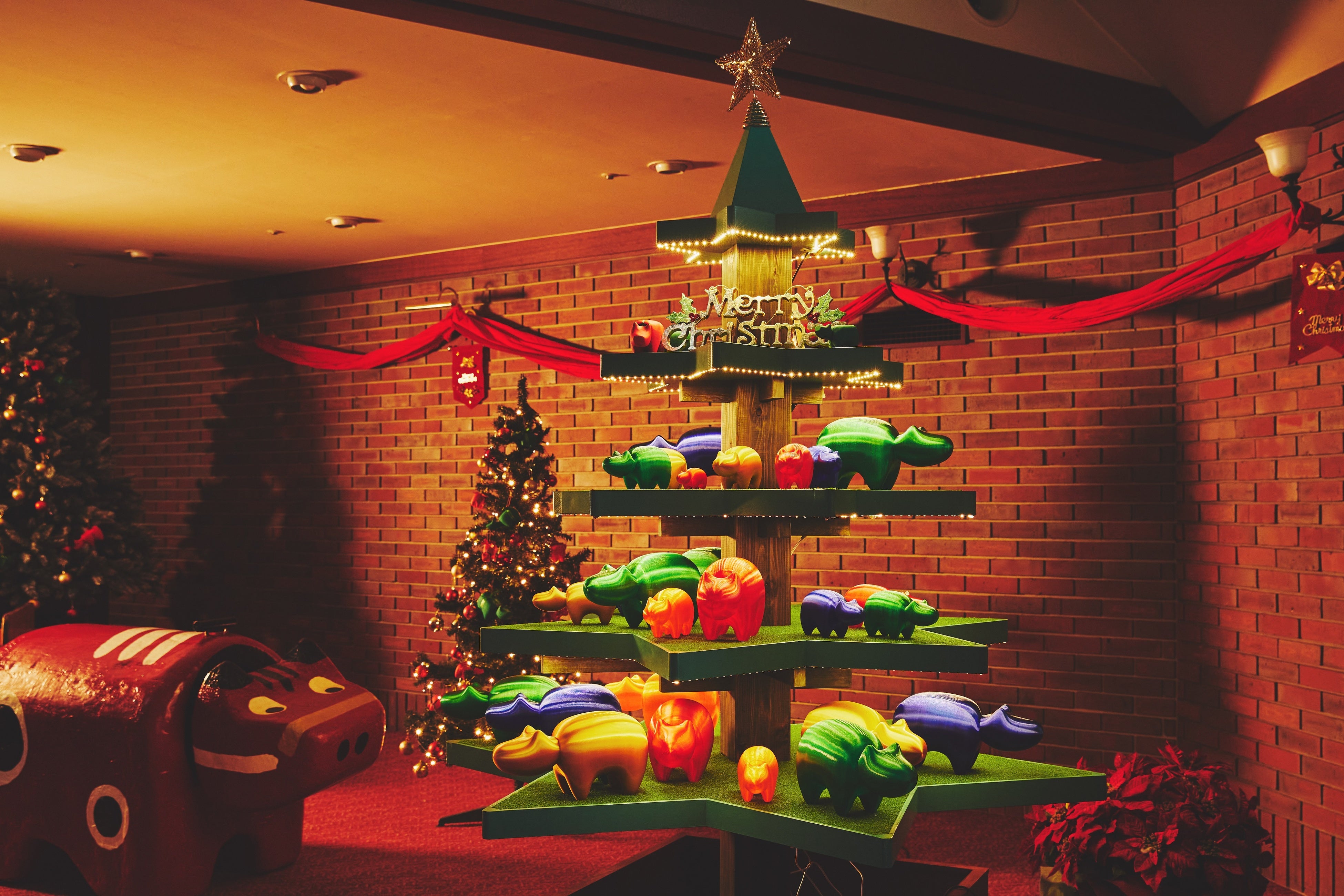 ~2023年はフォトスポットのクリスマスツリーの下に赤べこサンタが登場~