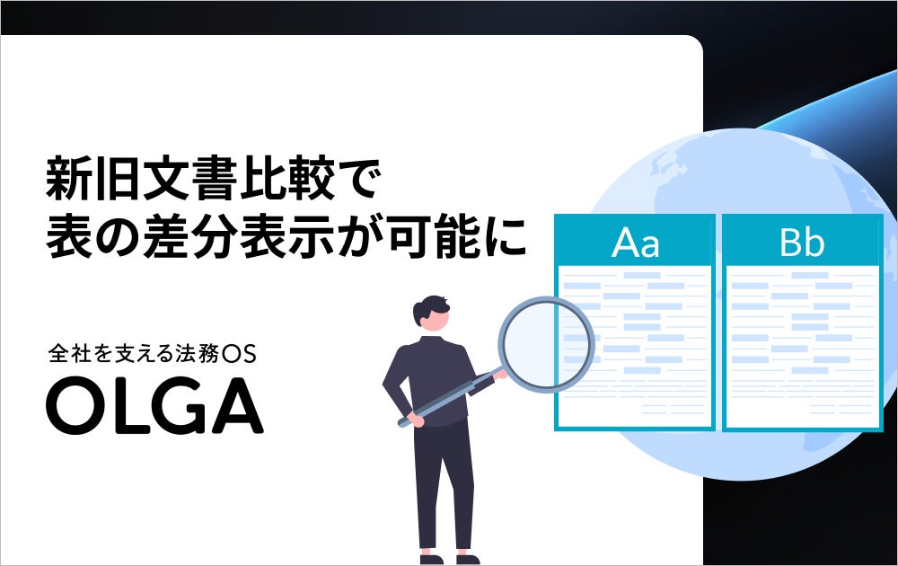GVA TECH株式会社(本社:東京都渋谷区、代表取締役:山本 俊、以下GVA TECH)は、全社を支える法務OS「OLGA(オルガ)」の文書比較機能が表や画像の差分表示に対応したことをお知らせします。