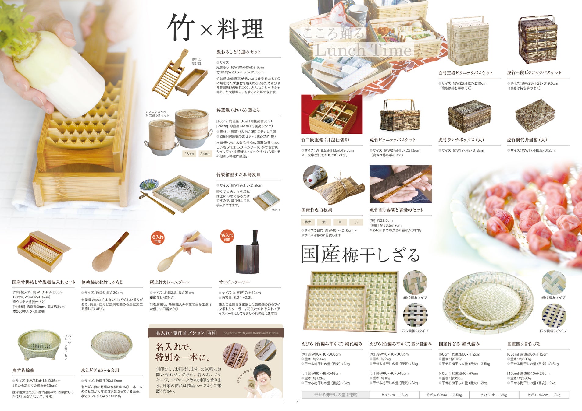 冒頭ページでは、「竹×料理」をテーマに、竹製大根おろし「鬼おろし」や、ヘルシー志向の高まりと共に人気を集める杉蒸篭など、調理シーンを豊かにする製品を多数ご紹介。竹の特性を活かした道具は、料理の質を高めるだけでなく、日常に自然素材ならではの温もりをもたらしてくれます。