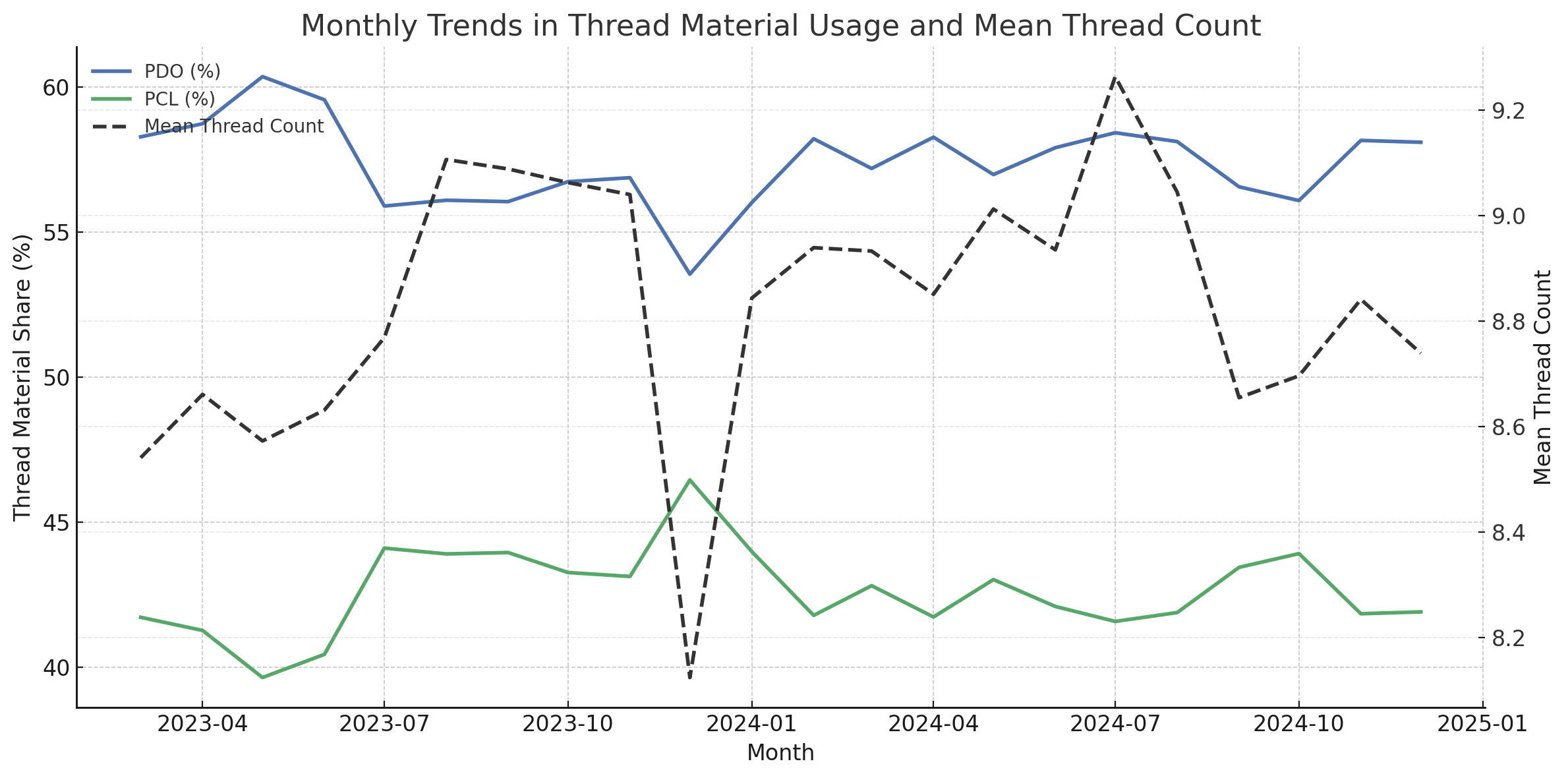 東京中央美容外科グループ(全国105院)における106,639名の患者データを対象とした後ろ向き横断研究を実施した。糸材質(PDOまたはPCL)、年齢、性別、使用糸本数を解析し、二元配置分散分析、多変量線形回帰、交互作用モデル、時系列解析を用いて評価した。