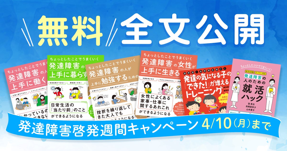 発達障害啓発週間に合わせ、翔泳社の発達障害関連10タイトルの書籍全文を4/10まで無料公開