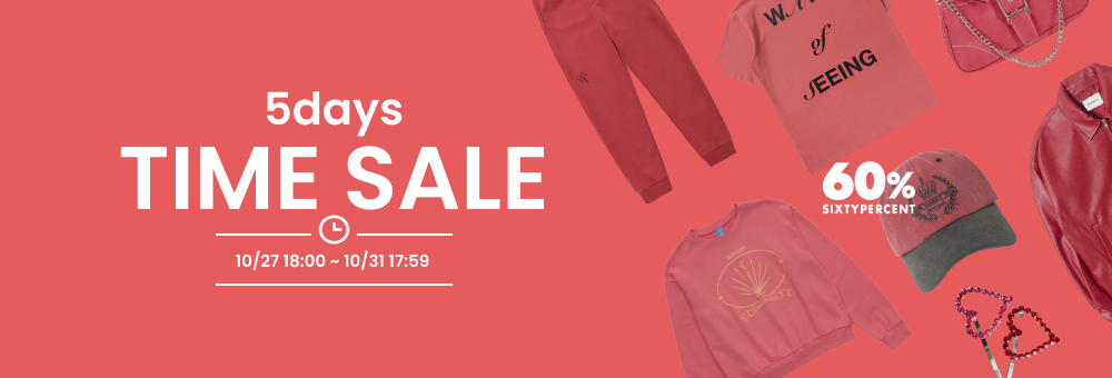 韓国・アジアを筆頭に800以上のブランドが入店するオンラインセレクトストア「60%」(シックスティーパーセント)が、5日間限定のタイムセールの開催を決定。10月27日 18:00から10月31日 17:59までの期間限定で開催をする。