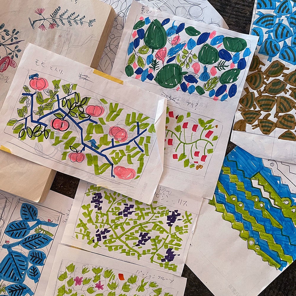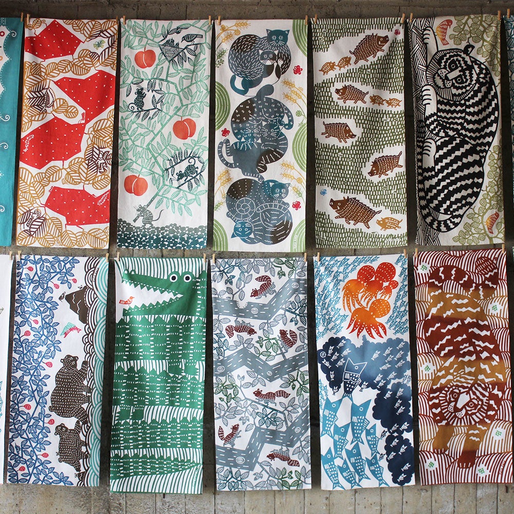 動物、昆虫、植物、風景…さまざまなモチーフからデザインされた作品には、ふわっと布を広げた時の喜びや眺めながら自由に思いを巡らせる楽しさが詰まっています。