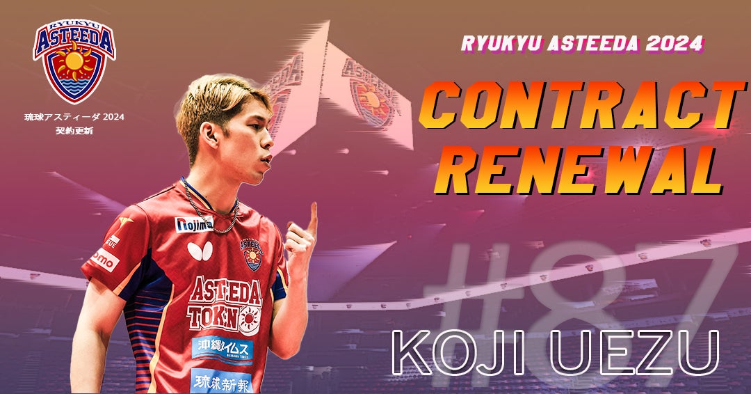 沖縄県出⾝、初のT リーガーとして来シーズンも琉球アスティーダで⼀緒に戦えることを⼤変嬉しいです。上江洲君の明るいキャラクターが⾃信に満ち溢れていて、何かやってくれるんじゃないかとワクワクさせてくれる選⼿です。是⾮、沖縄の卓球界を盛り上げてくれる事を期待しています。今後、ジュニア育成にもより⼀層⼒を⼊れ、 これからたくさんの沖縄出⾝のプロ卓球選⼿を⽣み出していけるように取り組んでまいります。沖縄と琉球アスティーダを⼀緒に盛り上げていこう︕