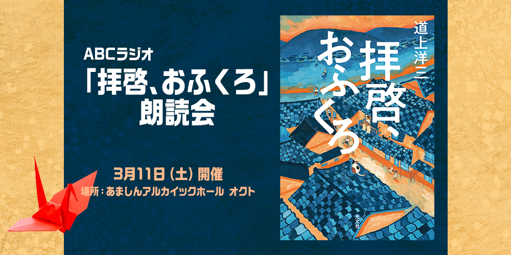 「拝啓、おふくろ」には本書で初めて明かした少年時代のことや、親子であって親子でないような、すれ違っているようですれ違っていないような、おふくろとの関係が綴られています。イベントでは特別に舞台用のオリジナル脚本を製作。ピアニスト・沼光絵理佳さんによるピアノの演奏をバックグラウンドに、道上さんと縁のあるABCアナウンサーや出演者、そして実子であり俳優として活躍する道上拓冬さんが出演し、朗読します。