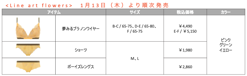 トリンプ・インターナショナル・ジャパン株式会社(本社:東京都中央区築地5-6-4、代表取締役社長:ヴァンサン・ネリアス)の直営店「AMOSTYLE BY Triumph(アモスタイル バイ トリンプ)以下 アモスタイル」の2022年春夏コレクションから、<Line art flowers(ラインアートフラワー)>を1月13日(木)よりアモスタイル店舗及びアモスタイル公式オンラインショップ(https://jp.amos-style.com/)にて順次発売します。今シーズンのテーマのVoyage(旅)にちなみ、“旅行者の喜び”という花言葉を持つクレマチスをモチーフにした、春一番にぴったりのシリーズの登場です!