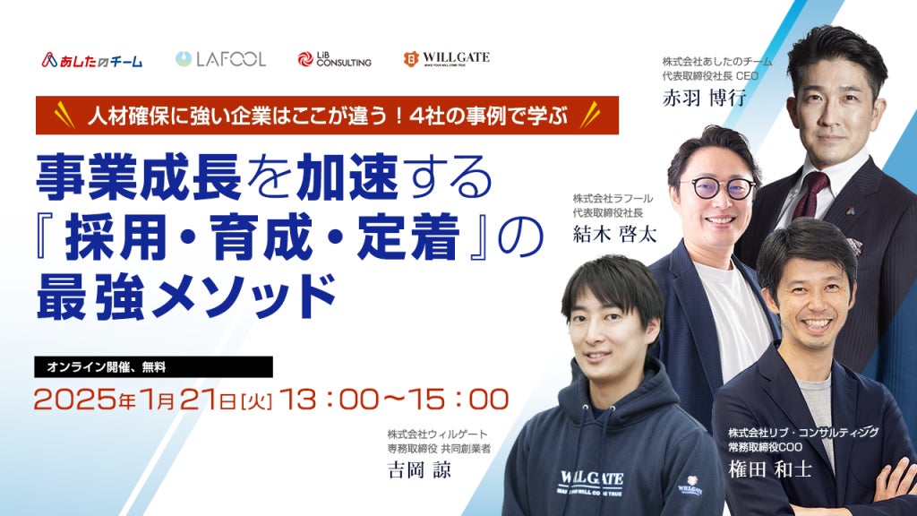 【1/21(火)開催】人材確保に強い企業はここが違う!4社の事例で学ぶ 事業成長を加速する『採用・育成・定着』の最強メソッド