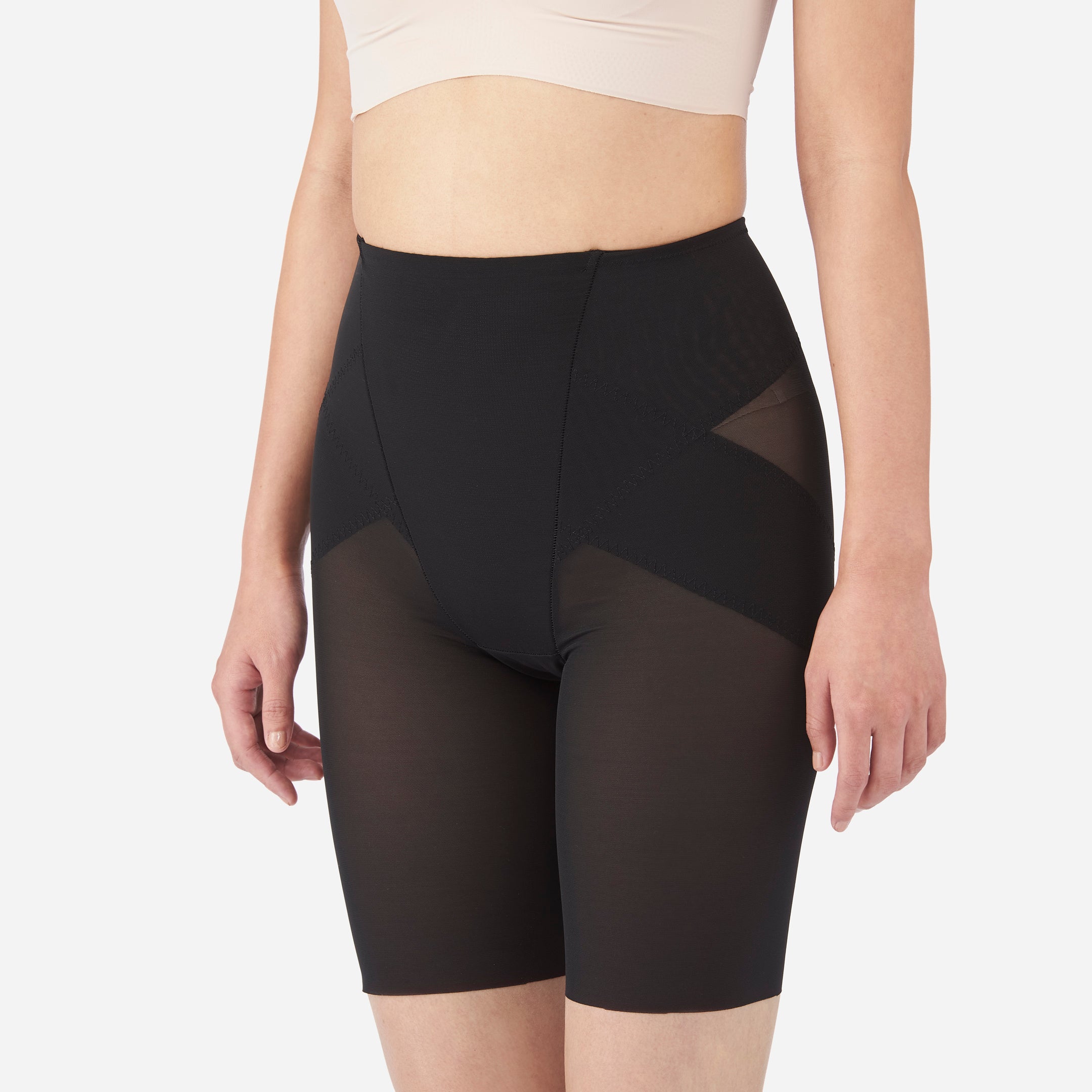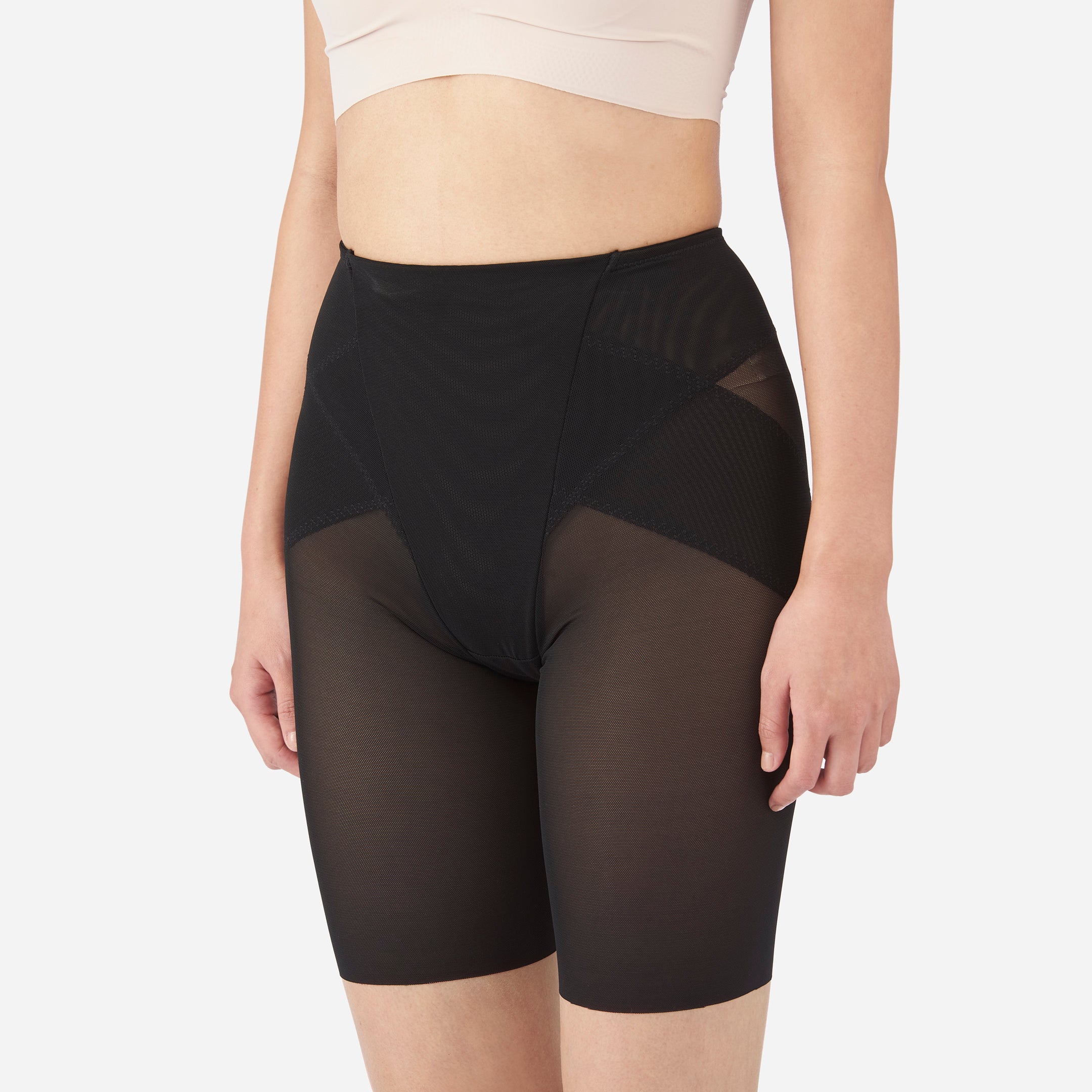 強力なパワーメッシュでボディラインをしっかり引き締めるガードル。はくだけでおなかすっきり、丸みのあるヒップラインをかなえます。裾は縫い目の少ないシームレス仕様で洋服に響きにくく、着用シーンを選びません。普段からガードルを使用している方や、しっかりとケアしたい方におすすめです。