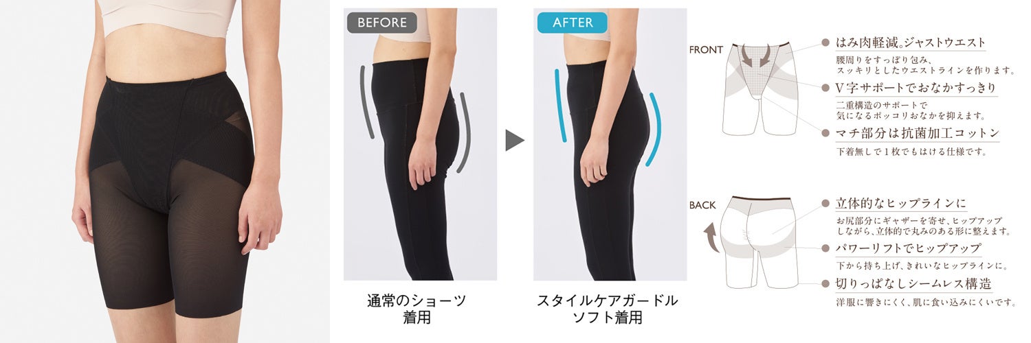 この度新作として、毎日心地良くスタイルケアができる『スタイルケアショーツ』『スタイルケアガードル(ハード・ソフト)』『朝すっきり着圧オーバーニー(ハード・ソフト)』を発売します。