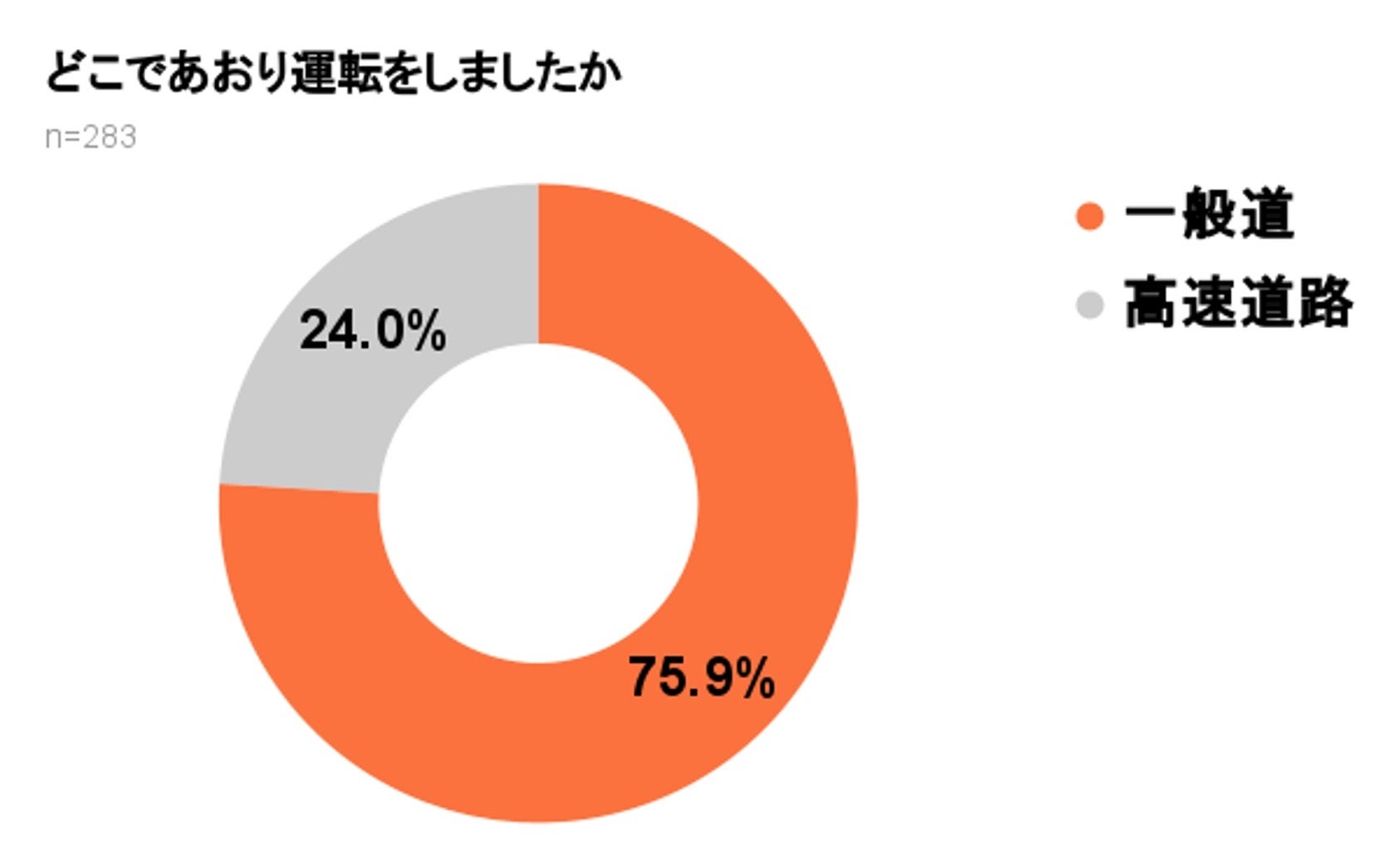 「“あおり運転”をしたことがありますか」と尋ねたところ、「ある」と答えたのは22.8%でした。続けて、「どこで“あおり運転”をしましたか」と尋ねたところ、場所は一般道が7割超という結果となりました。