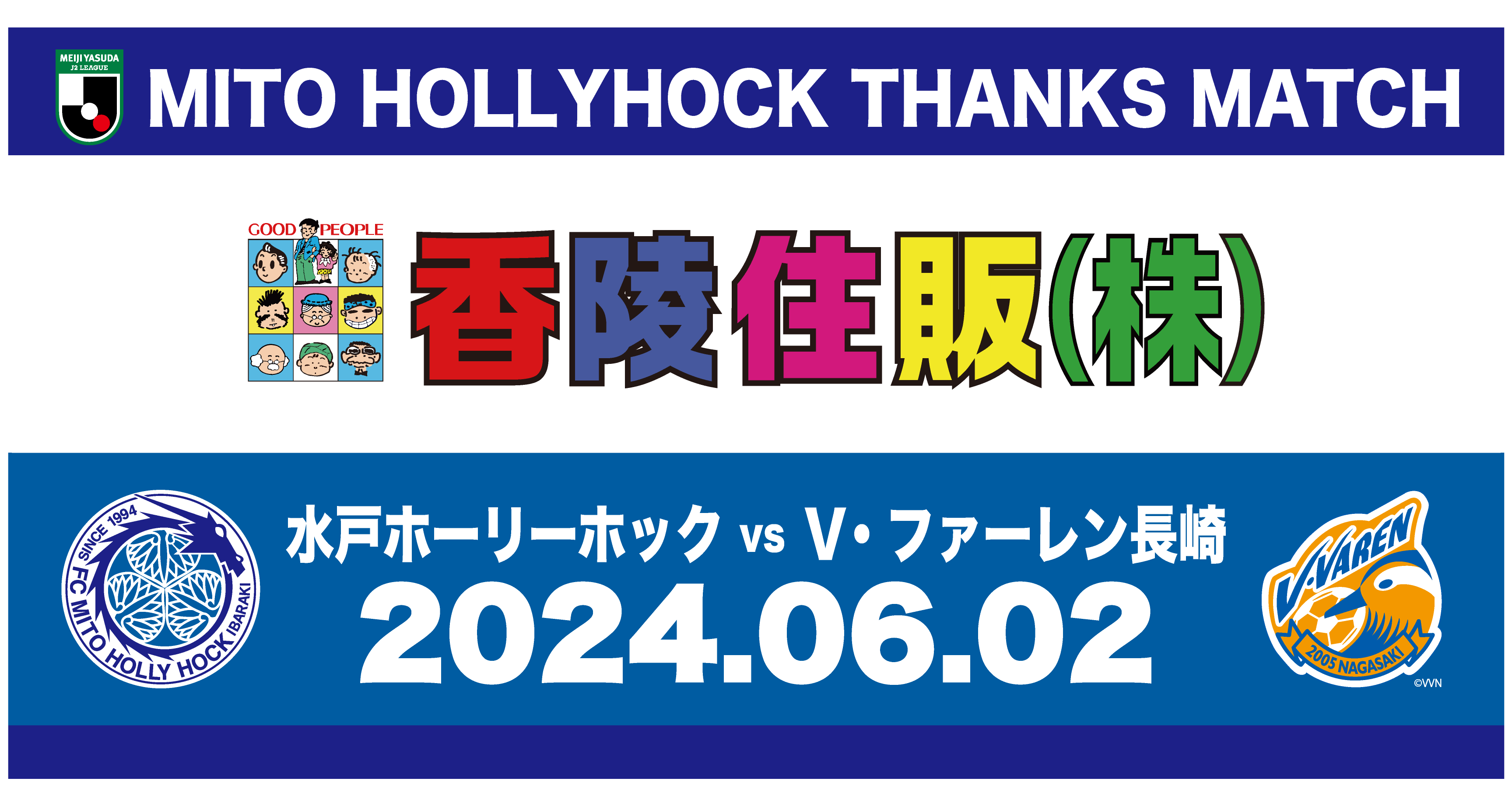 このたび、株式会社フットボールクラブ水戸ホーリーホックは、6月2日(日)に開催するホームゲーム、2024明治安田J2リーグ第18節 水戸ホーリーホック vs. V・ファーレン長崎 を香陵住販株式会社にご支援いただき『香陵住販サンクスマッチ』として開催いたします。