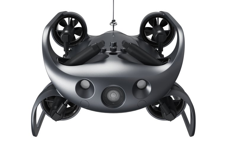 コンパクトで操作が簡単な水中ドローン。4Kカメラを搭載し、最大100m深度まで潜水可能。