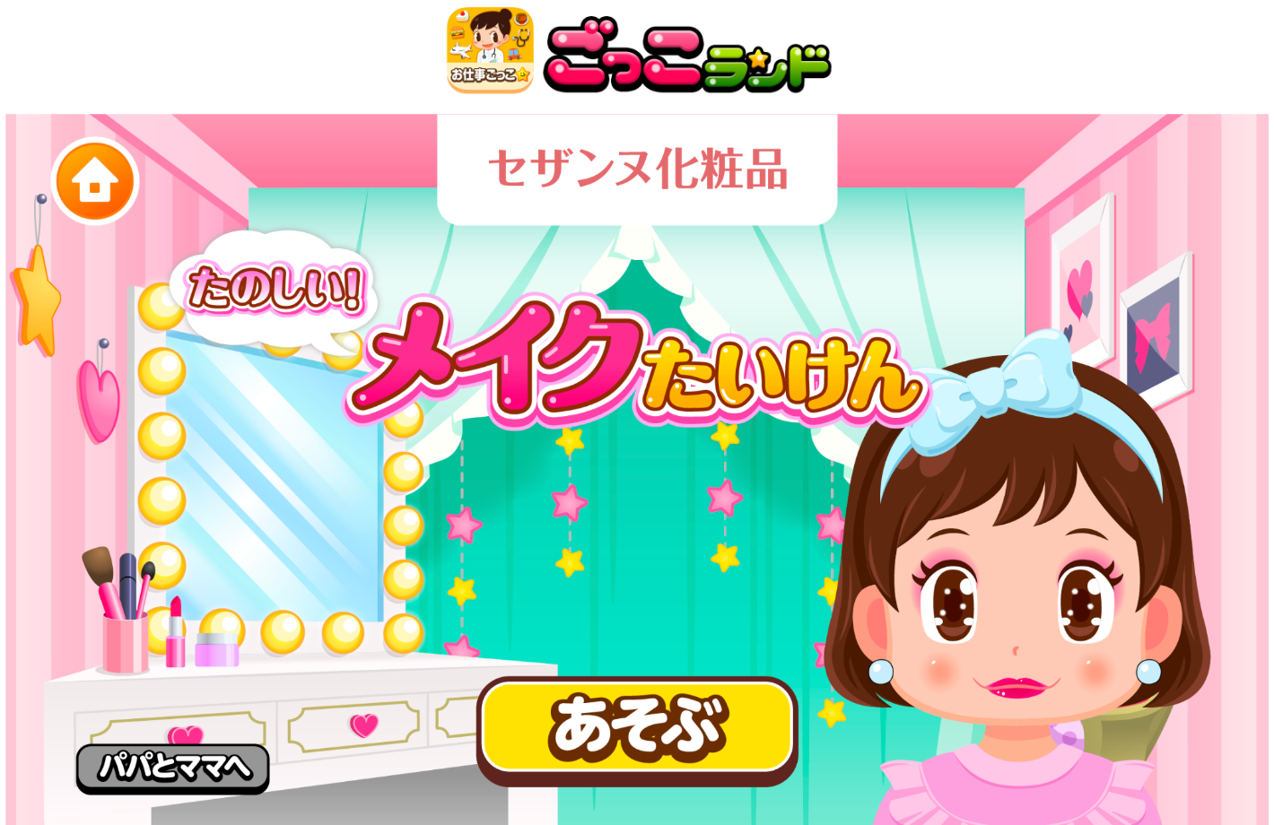 子ども向け社会体験アプリ『ごっこランド』に セザンヌ化粧品の新ゲーム「たのしい!メイクたいけん」が登場!