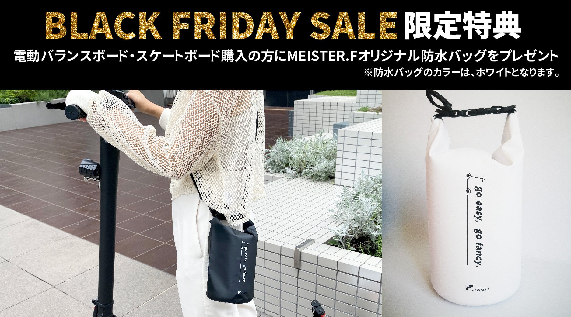 楽天市場「Show !t」は11月22日(金)20時開始、MESTER.F電動バランスボードご購入で、10,000円相当の輪行バックとヘルメットもしくは、キッズプロテクターのセットをプレゼントするキャンペーンを開催。さらに、BLACK FRIDAY SALE限定で、MEISTER.Fオリジナル防水バッグをプレゼント。届いたらすぐに練習できるお得なセットでかっこよくバランスボードを乗りこなしましょう。