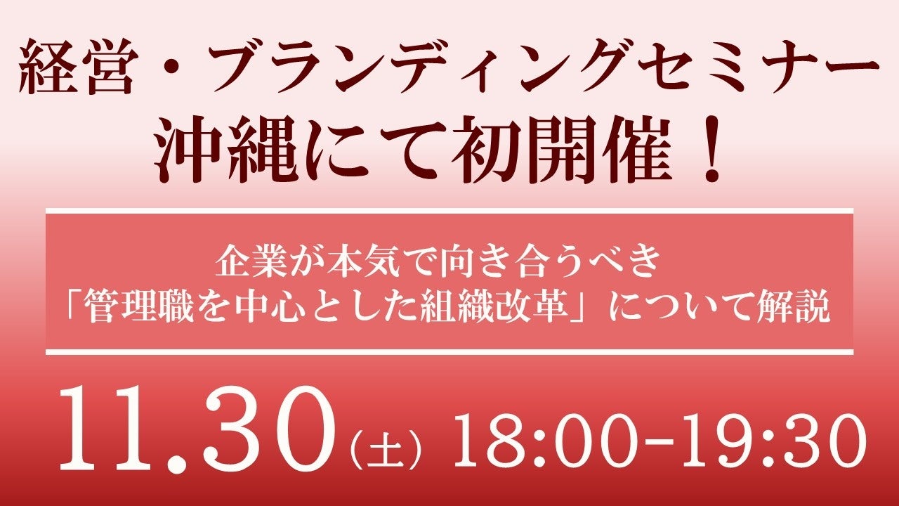 【沖縄初開催!】全国各地で話題沸騰中の『経営・ブランディングセミナー』11/30(土)に開催決定
