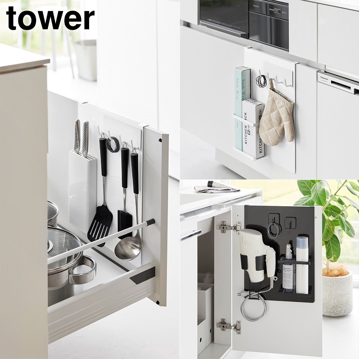 引っ掛けるだけで簡単に設置でき、表側に設置してよく使うアイテムを収納するのも便利です。