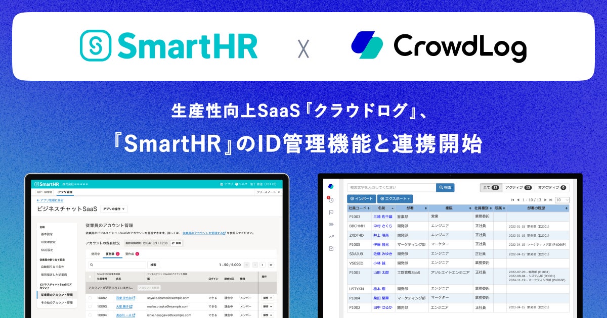 生産性向上SaaS「クラウドログ」、クラウド人事労務ソフト「SmartHR」のID管理機能と連携開始