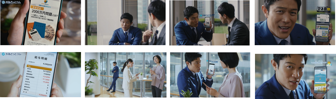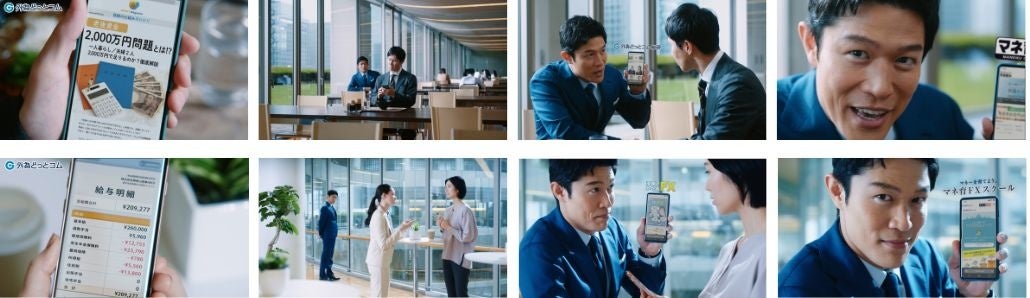 今回の新CMでは、老後の資金や子どもの学費のためにFXを始めようか悩む人の前に、スーツ姿の鈴木さんが登場。外為どっとコムが独⾃のFX研究機関を持っており、初⼼者でも分かりやすい情報が揃っていることや、誰でも簡単に操作ができる利便性を追求したアプリがあること、レベルに合わせたオンライン講座が無料で受けられることなど、初心者でも安心できる条件が揃っていることを熱く語ります。