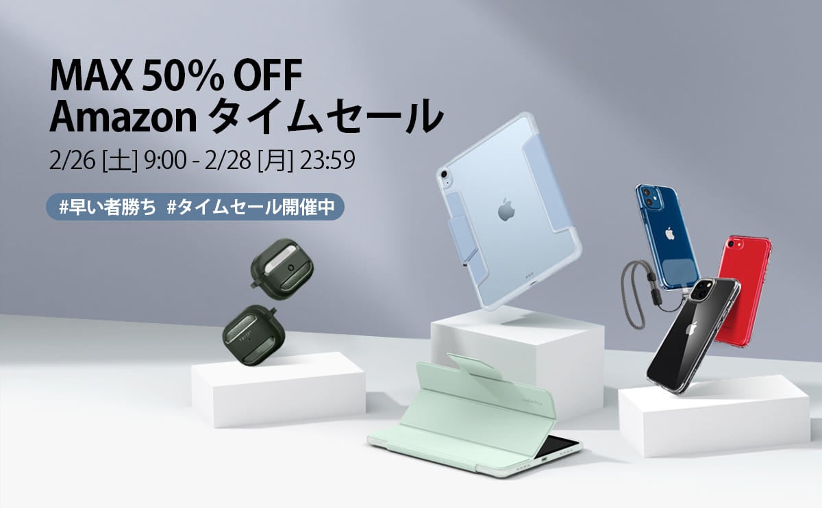 Spigen公式直営店、「Amazon タイムセール祭り」にて、人気商品が最大50%offOFFで販売!!!