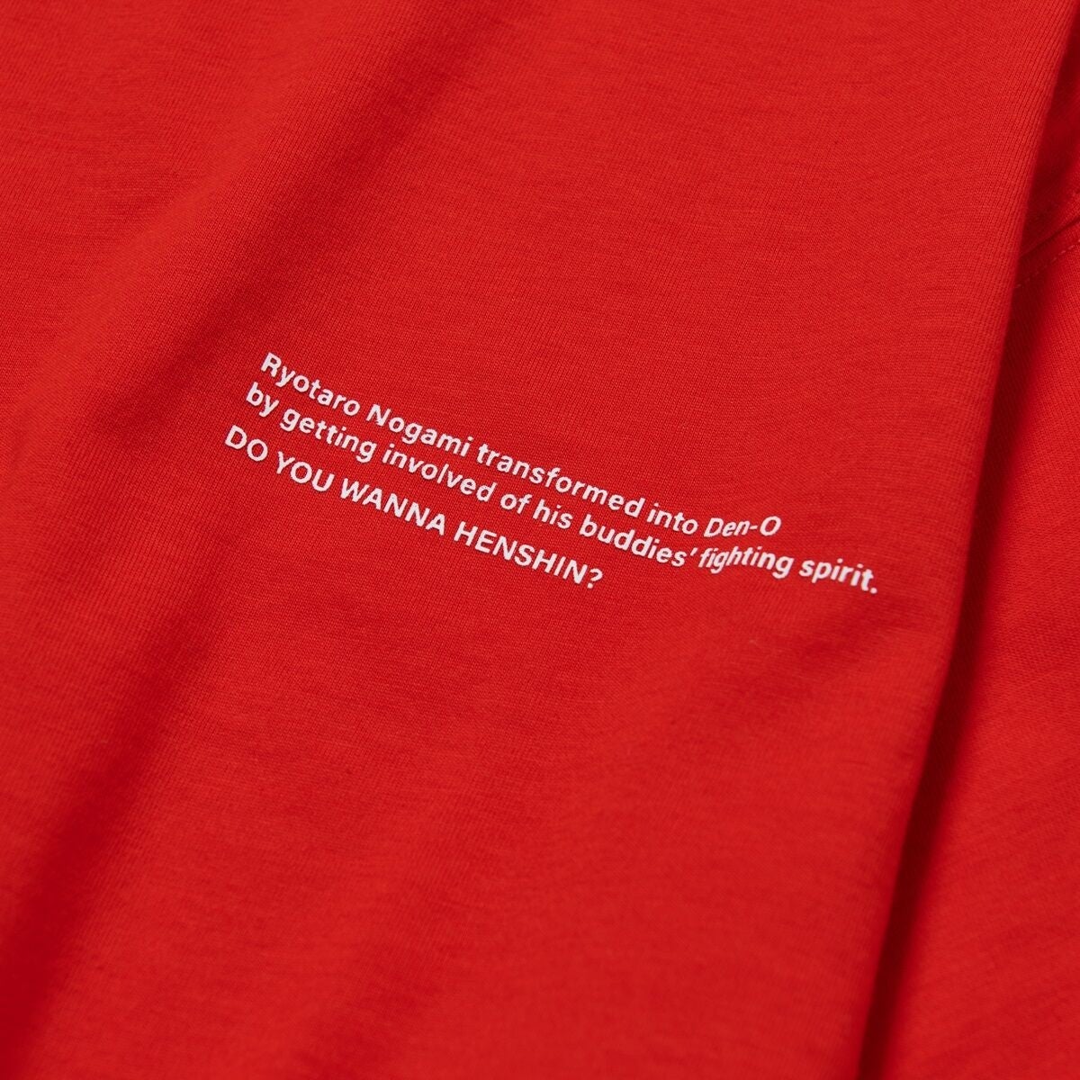 4フォームをイメージした発色のよいカラーが特徴的なTシャツ。胸元には主人公、野上良太郎が変身した理由をさりげなくプリント。やや薄手の生地で他のTシャツやパーカーとのレイヤードでコーディネートの幅を広げます。